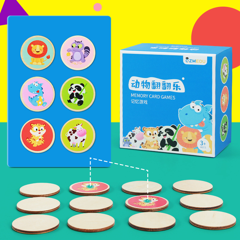 Wooden Flip & Match Memory Chess Children’s Animal Matching Desktop Game Right Brain Memory Training Toy Intelligence