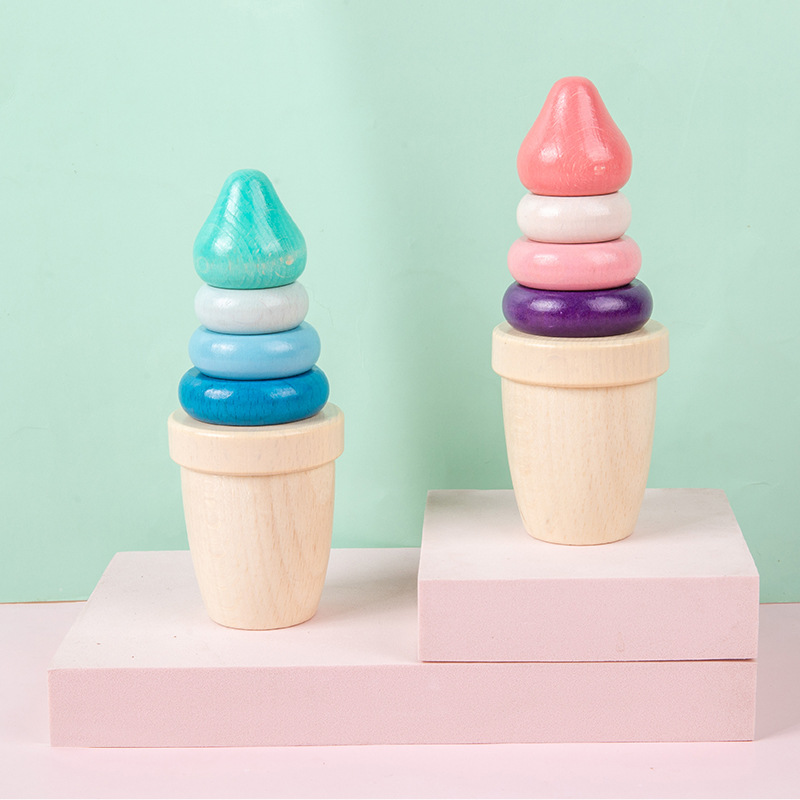 Wooden Magnetic Ice Cream Children’s Dollhouse Boys and Girls Building Blocks Rainbow Tower Set Ring Early Education Puzzle Toy Intelligence